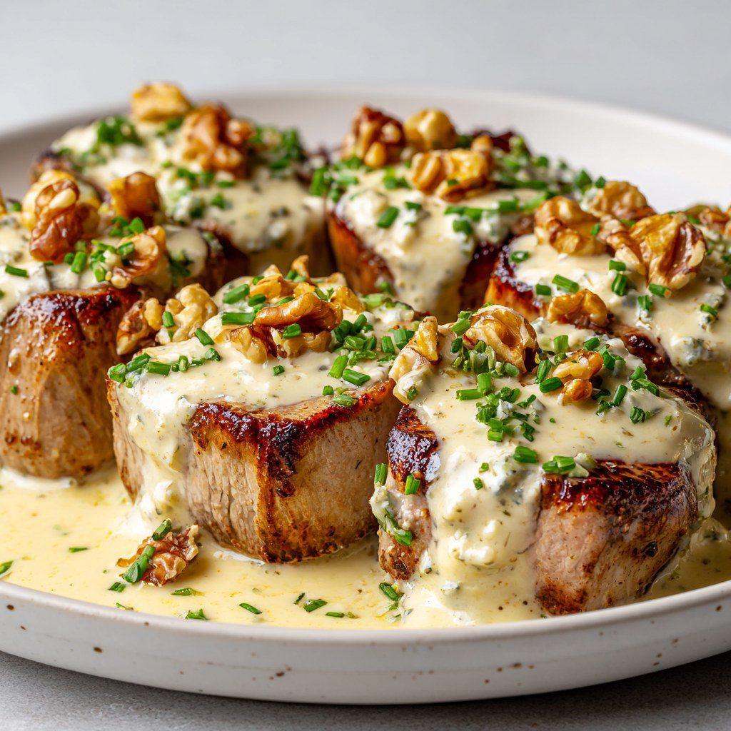 Varkenshaas met witte Roquefortsaus is altijd de ideale keuze geweest wanneer ik een verfijnd gerecht wil serveren zonder technische complicaties. De malsheid van het varkensvlees combineert perfect met een ongelooflijk evenwichtige Roquefortsaus, dankzij de room en de knapperigheid van de walnoten. Dit royale gerecht viert authentieke smaken en het plezier van een gezellige maaltijd aan een prachtig gedekte tafel.