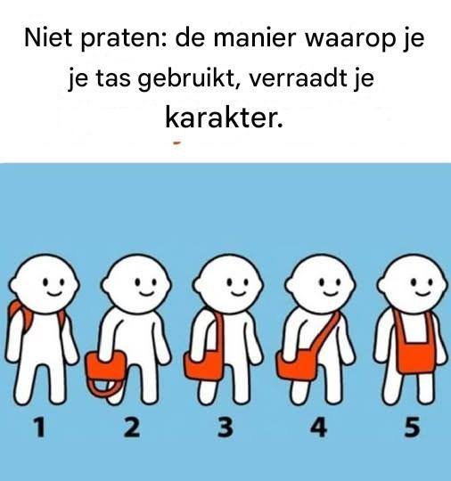 Stel je voor dat iemand zijn tas over zijn schouder gooit, klaar om op pad te gaan. Dit is het kenmerk van een levendige persoonlijkheid, altijd in beweging.