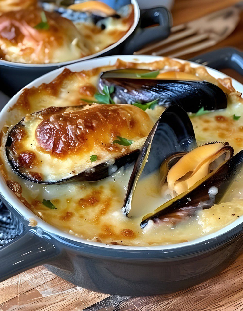 Dit luxe gerecht combineert de heerlijke smaak van verse mosselen met een rijke, romige kaassaus en een knapperig gegratineerd laagje. Perfect als voorgerecht of hoofdgerecht bij een speciaal diner!