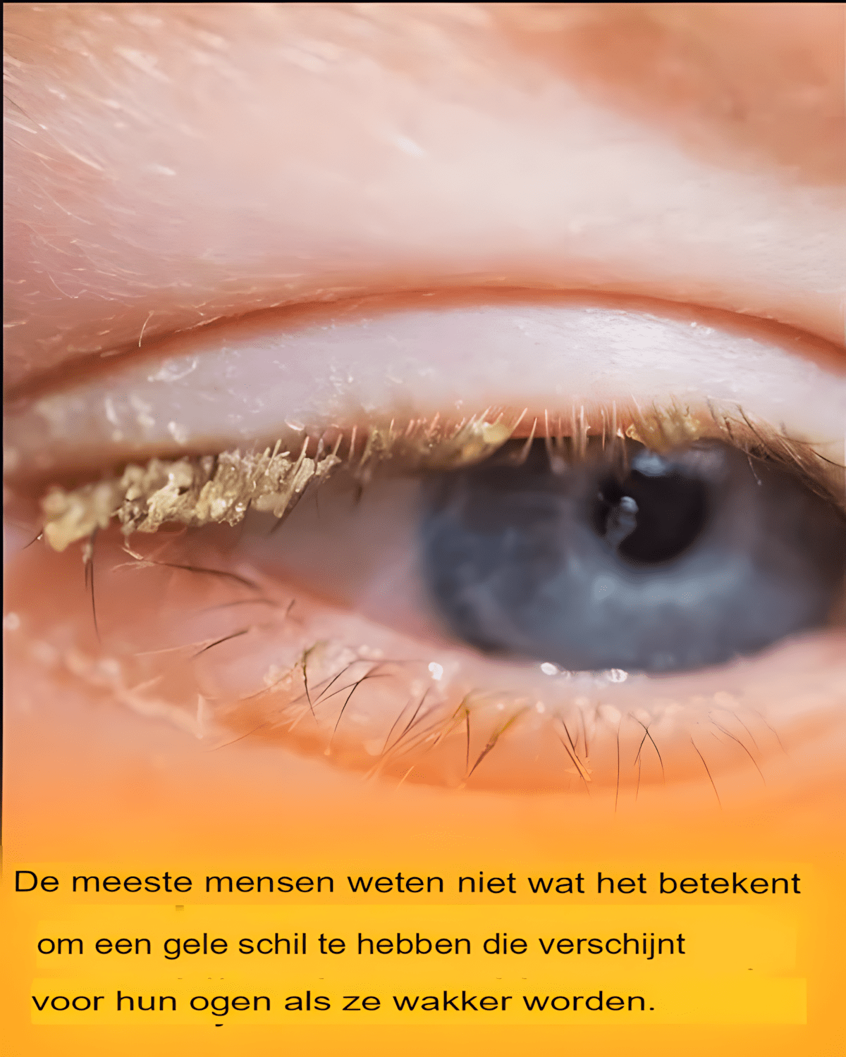 De gelige kleur van de afscheiding in je ooghoeken na het slapen komt vooral door tranen en talg die zich ‘s nachts mengen met overtollige eiwitten, vetstoffen en afvalstoffen. Tijdens je slaap produceert je lichaam minder traanvocht dan overdag. Daardoor hoopt het weinige vocht zich op en verdampt het langzaam, wat een gele, ietwat korrelige substantie achterlaat.