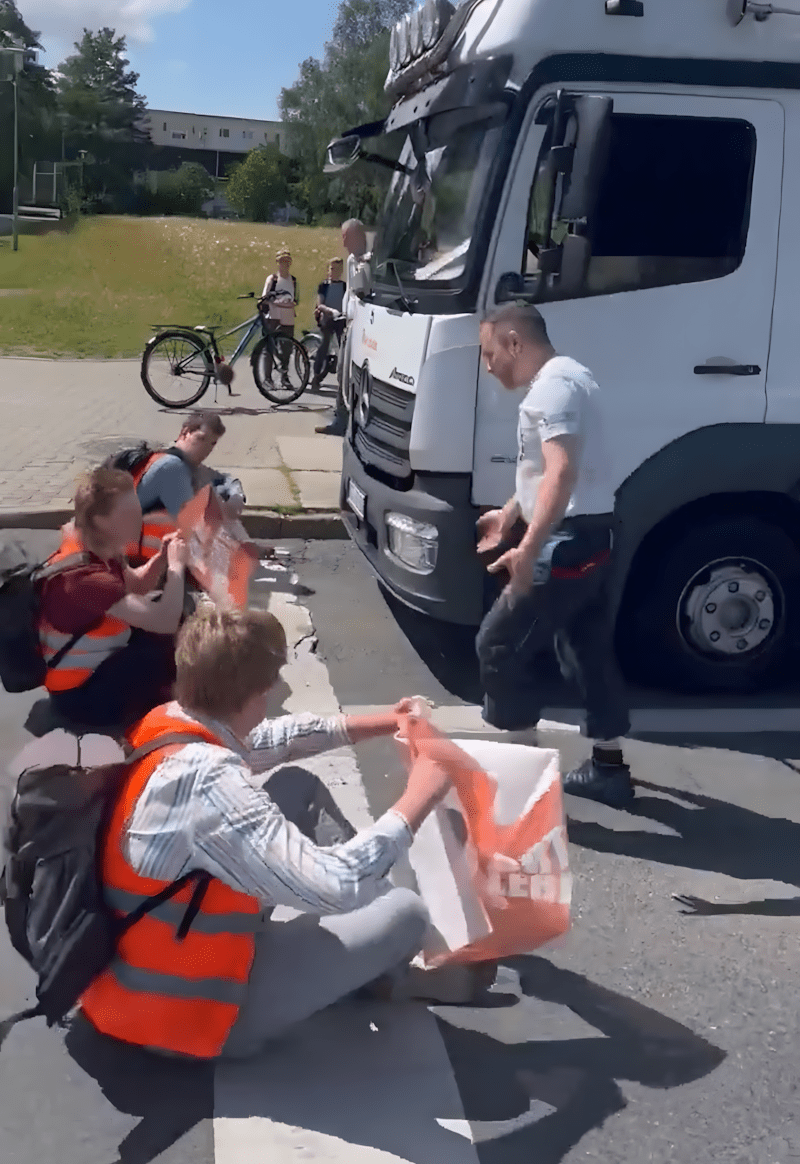 HEFTIGE BEELDEN: Vrachtwagenchauffeur laat zich niet tegenhouden door activisten en neemt drastische maatregelen