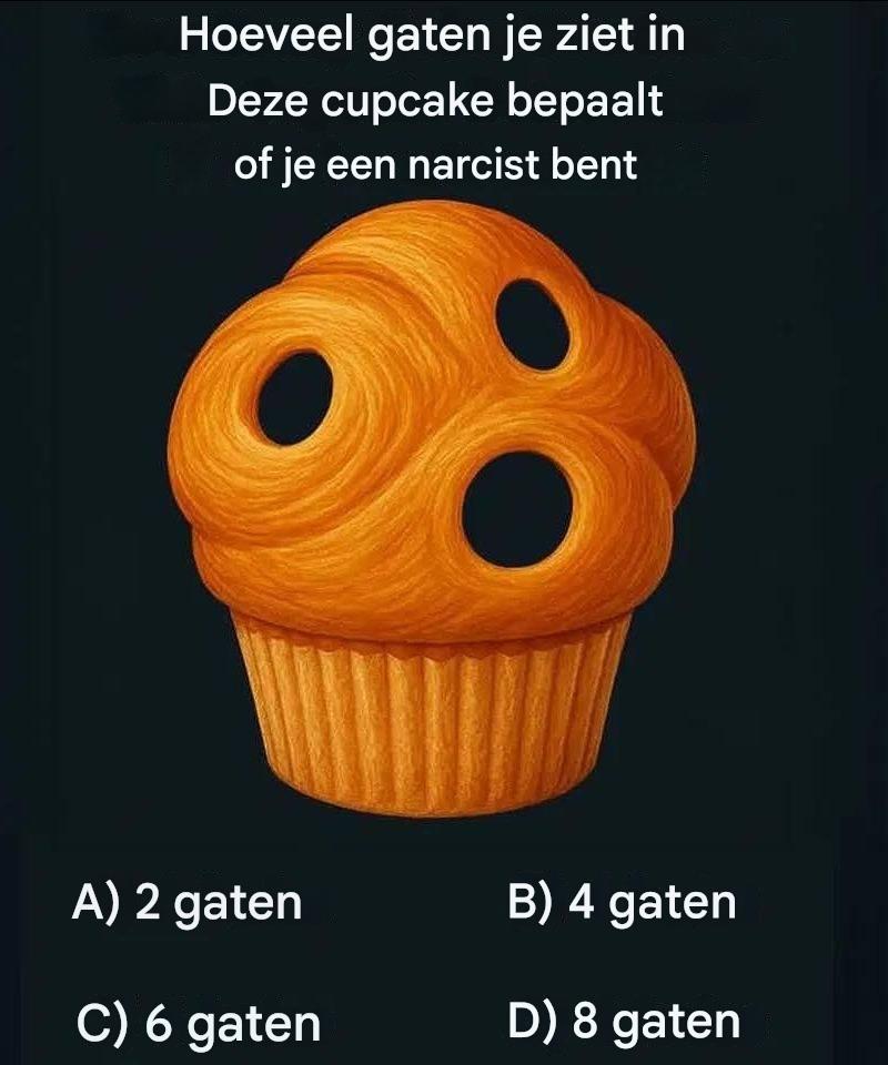 Op het eerste gezicht lijkt deze cupcake simpel: een spiraal van goudbruin deeg met een paar gaatjes in de bovenkant. Maar kijk eens goed. Hoeveel gaatjes zie je? Twee? Vier? Zes? Acht?