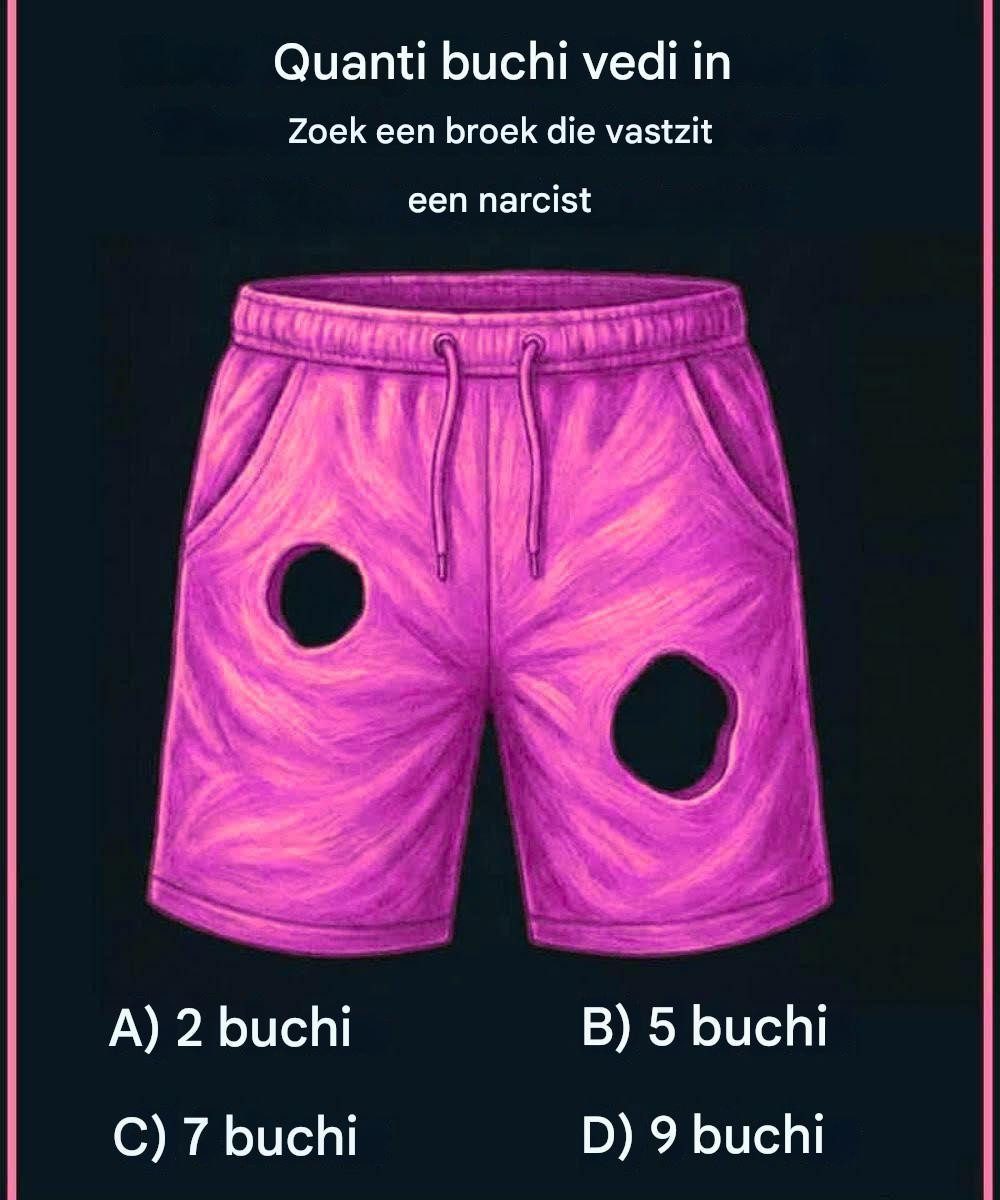 Op het eerste gezicht lijkt deze virale afbeelding niets meer dan een paar kapotte shorts. Maar zodra je de kop leest – “Hoeveel gaten je in deze shorts ziet, bepaalt of je een narcist bent” – schakelt je brein direct over van passief scrollen naar een analytische modus. En dat is precies waarom deze optische puzzel de sociale media heeft veroverd: het daagt je waarneming uit en prikkelt tegelijkertijd je ego.