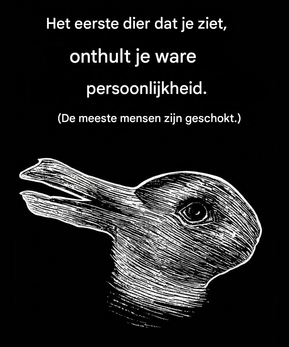 Als het ene dier je aandacht als eerste trok, kan dat duiden op een van nature praktische en georganiseerde benadering van situaties. Mensen met deze neiging hechten vaak waarde aan helderheid, logica en stapsgewijze probleemoplossing. Het zien van het andere dier als eerste kan wijzen op een meer creatieve en intuïtieve kijk op de wereld, met een voorkeur voor symboliek en het verkennen van mogelijkheden die verder gaan dan de uiterlijke schijn. In werkelijkheid gebruiken de meeste mensen beide stijlen, afhankelijk van de context. Uiteindelijk gaat het bij optische illusies niet om het in hokjes plaatsen van mensen, maar om het waarderen van de rijke diversiteit aan manieren waarop mensen de wereld waarnemen en interpreteren.