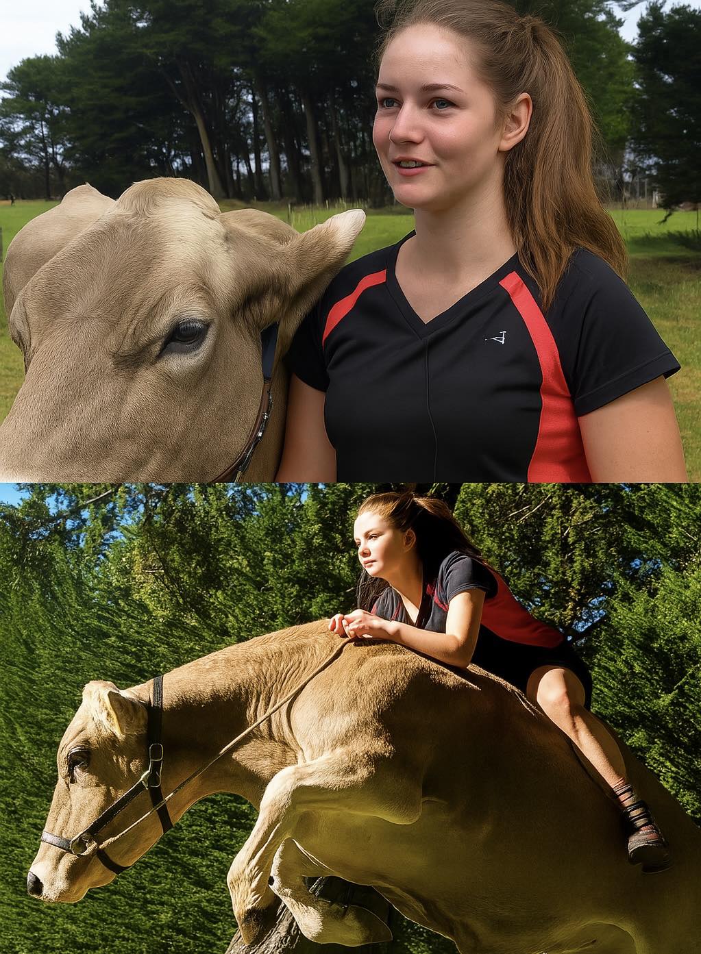 Uiteindelijk begon Hanaa Lilac te berijden. Samen draafden ze door de velden, oefenden ze dressuurbewegingen, en genoten ze van het samenzijn. De buren konden hun ogen niet geloven – een meisje op een koe die zich gedroeg als een paard! Ze glimlachten, filmden het duo en deelden hun verbazing.