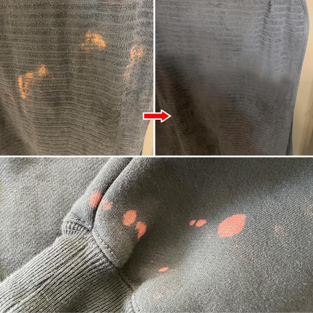 Tegen de tijd dat het kledingstuk is opgedroogd, zal de bleekvlek verdwenen zijn.