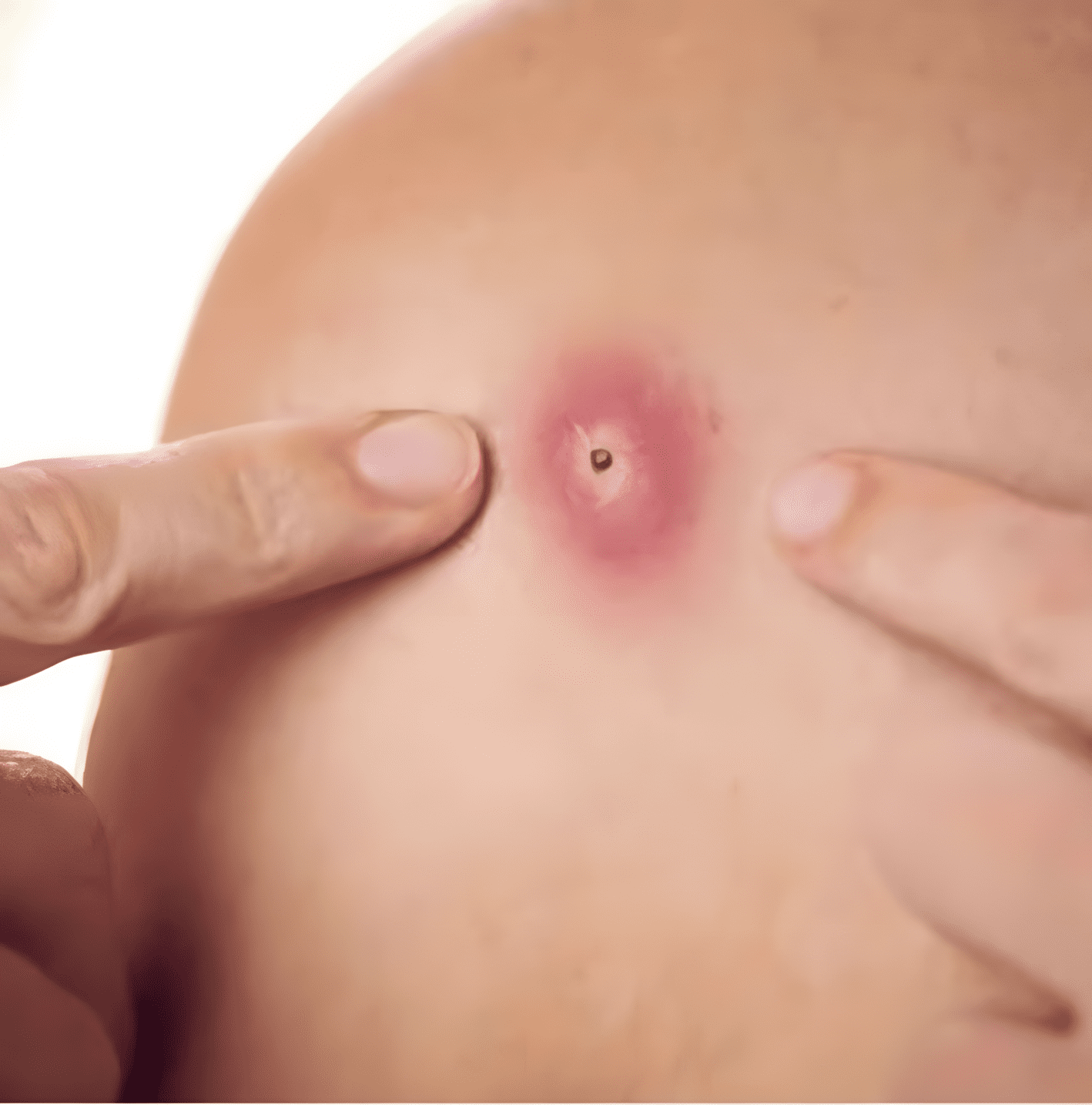 Het is een pijnlijke huidinfectie die ontstaat in een haarzakje of talgklier. Het komt meestal voor op plekken waar de huid zweet of wrijving ondervindt, zoals de oksels, billen en binnenkant van de dijen.
