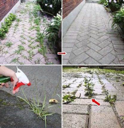 Deze stof is dodelijk voor sommige planten: besproei het gras met azijn; het zal binnen enkele dagen verdwijnen.