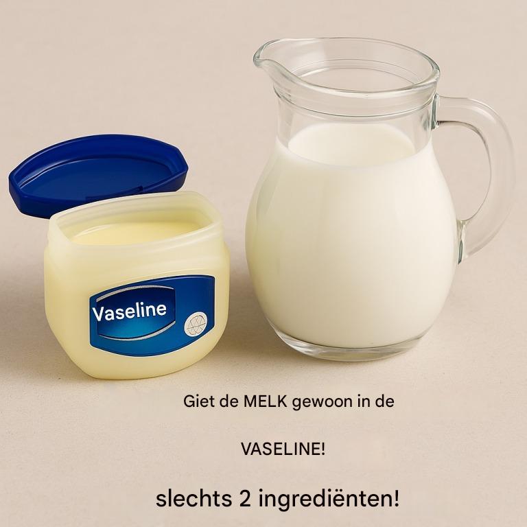 Vaseline daarentegen houdt vocht vast en zorgt voor langdurige hydratatie. Vormt een barrière die de huid beschermt tegen uitdroging en scheuren. Vaseline helpt ook bij het genezen van beschadigde of geïrriteerde huid. In combinatie met melk creëren deze twee ingrediënten een hydraterende en helende crème die wonderen doet voor het gezicht, de handen, de voeten en zelfs de lippen.