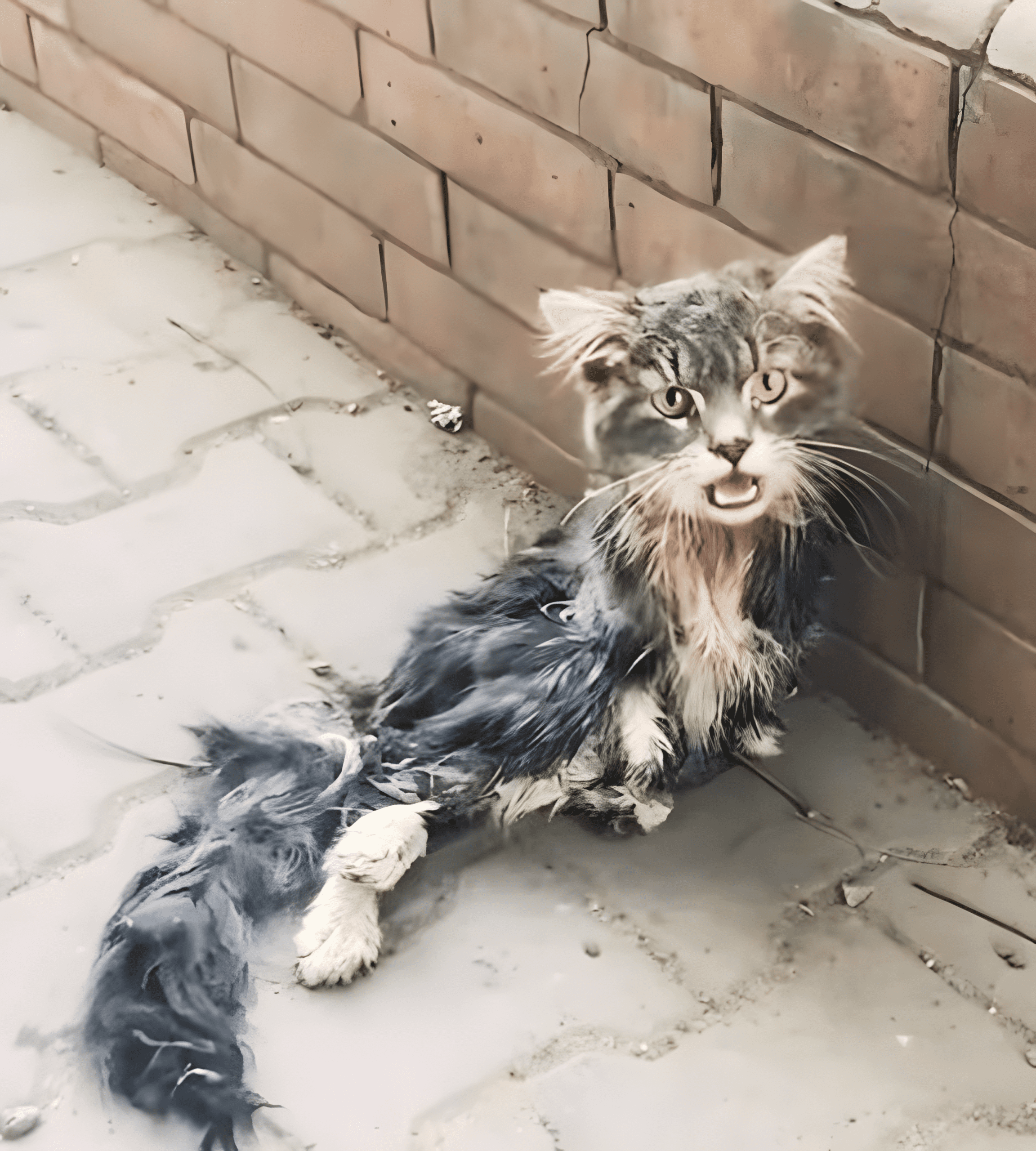In de levendige straten van Caïro, tussen de kleurrijke marktkraampjes en het vrolijke geroezemoes, viel een lange grijze kat direct op. Rustig liggend op de stoep leek het alsof ze wachtte op iets speciaals, haar zachte vacht glinsterend in het zonlicht. Haar vriendelijke, glinsterende ogen trokken de aandacht van voorbijgangers, terwijl haar serene aanwezigheid vertrouwen en hoop uitstraalde. Ondanks haar onbeweeglijke achterpoten, leek ze onverstoorbaar en straalde rust en vrede uit, wat mensen die even bleven staan om naar haar te kijken zeker niet ontging.