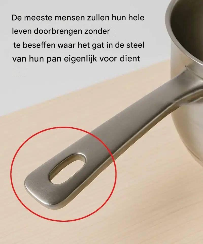In de bruisende wereld van keukeninnovaties, waar elke ronding en contour van kookgerei minutieus is vormgegeven, bestaat er een ogenschijnlijk onbeduidend kenmerk dat vaak aan onze aandacht ontsnapt: het bescheiden gat in de handgreep van onze potten en pannen. Je hebt het misschien wel eens gezien, misschien heb je er zelfs over nagedacht, maar de kans is groot dat je het veelzijdige doel ervan nooit echt hebt begrepen. Het is gemakkelijk om het af te doen als een simpele designfout, een bijzaak in het grote geheel van keukengadgets. Dit ogenschijnlijk triviale detail herbergt echter een verzameling praktische toepassingen waar velen van ons, zelfs doorgewinterde koks, zich niet van bewust zijn. Laten we op reis gaan om dit bescheiden gat te demystificeren en de ingenieuze manieren te verkennen waarop het onze culinaire ervaringen verbetert.