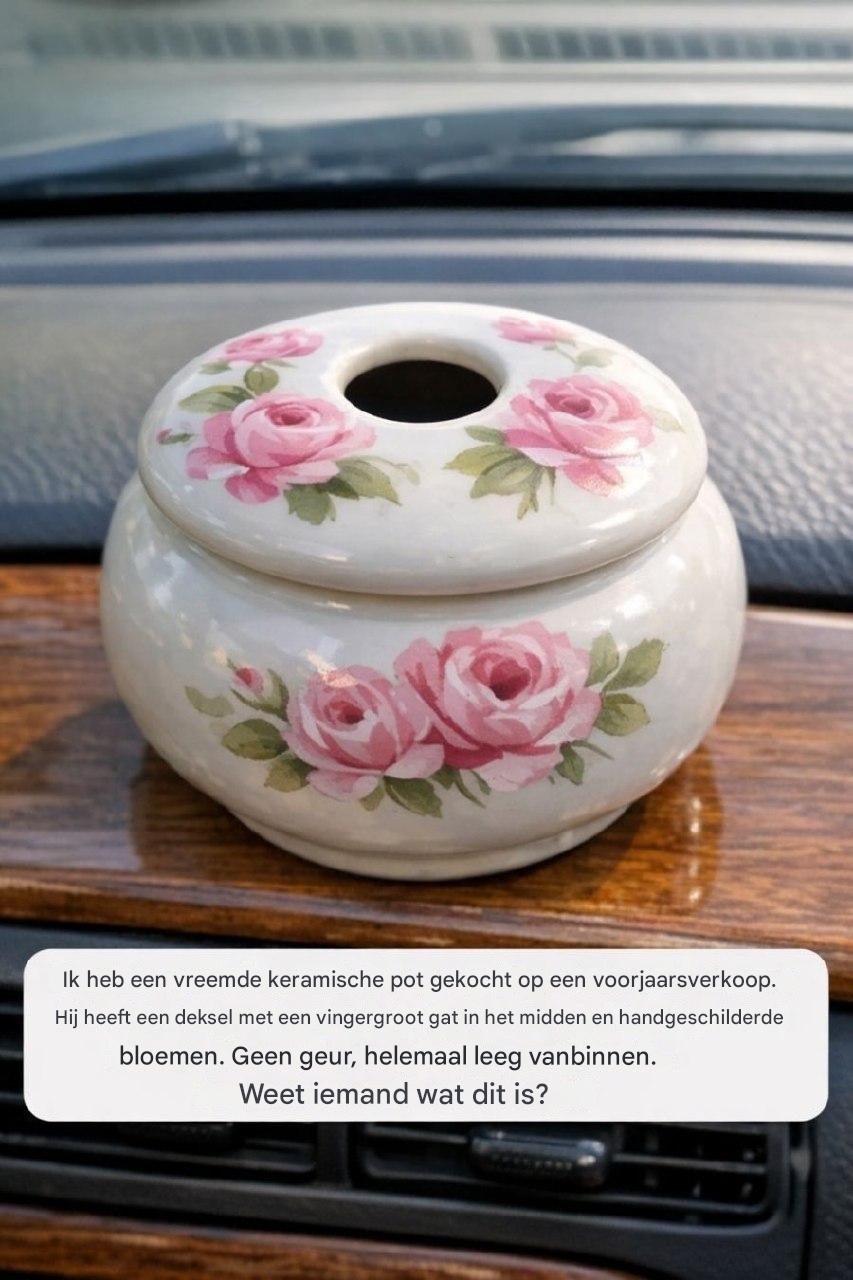 Versierd met handgeschilderde bloemen en voorzien van een deksel met een ongewoon vingergroot gat in het midden, was deze pot anders dan alles wat ik ooit eerder had gezien. Hij was volledig leeg, zonder waarneembare geur of resten erin. Dit wekte mijn nieuwsgierigheid en leidde me op een zoektocht naar de oorsprong en het doel van dit mysterieuze voorwerp. Zou dit een vergeten relikwie uit een vervlogen tijdperk kunnen zijn, of misschien een eenvoudig huishoudelijk voorwerp met een onverwachte geschiedenis?