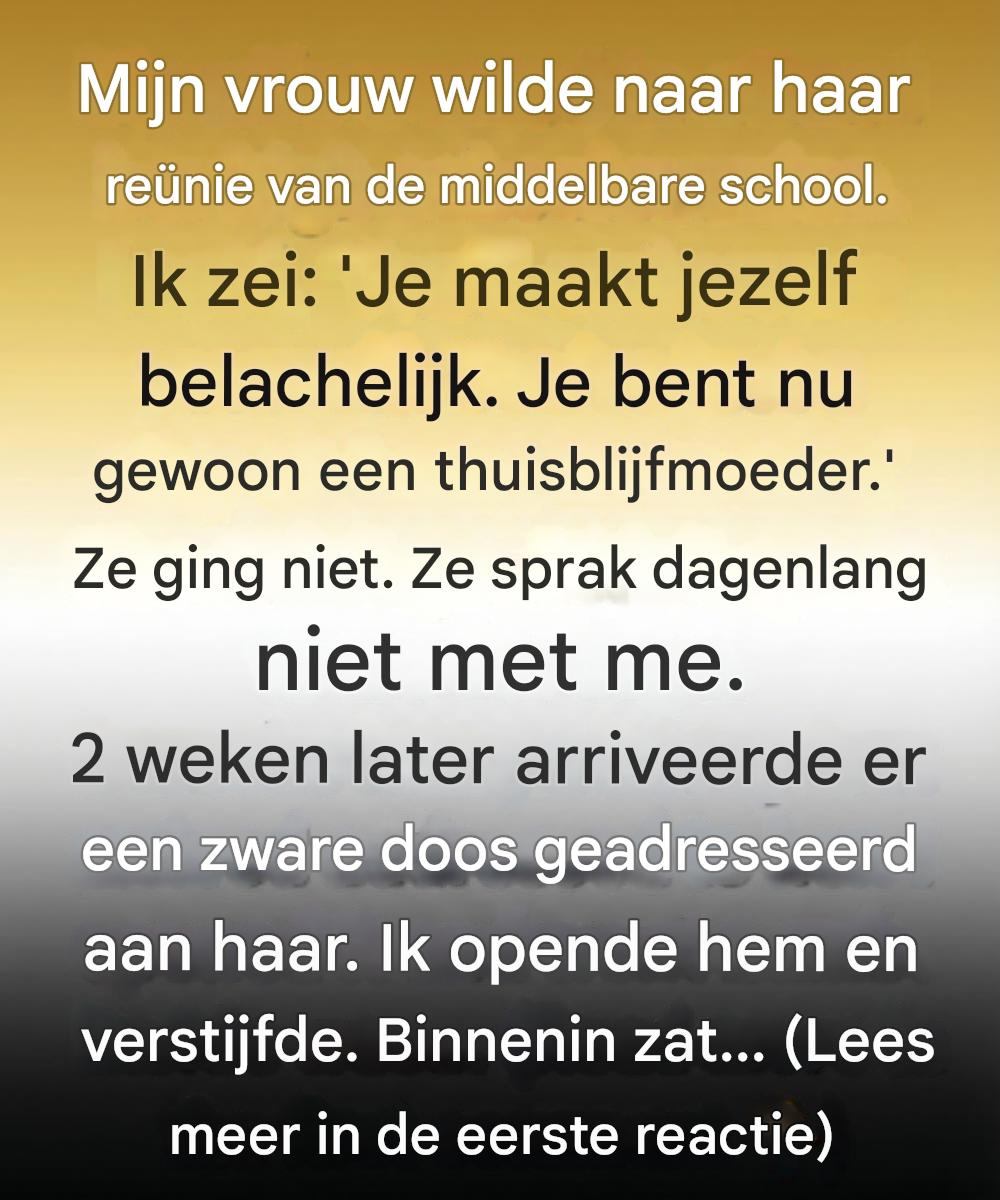 Ze was boodschappen aan het doen. Ik aarzelde even en droeg het toen naar binnen. Het gewicht verraste me – niet alleen fysiek, maar op een manier die ik niet kon verklaren. Toen ik het openmaakte, voelde ik een beklemmend gevoel op mijn borst.