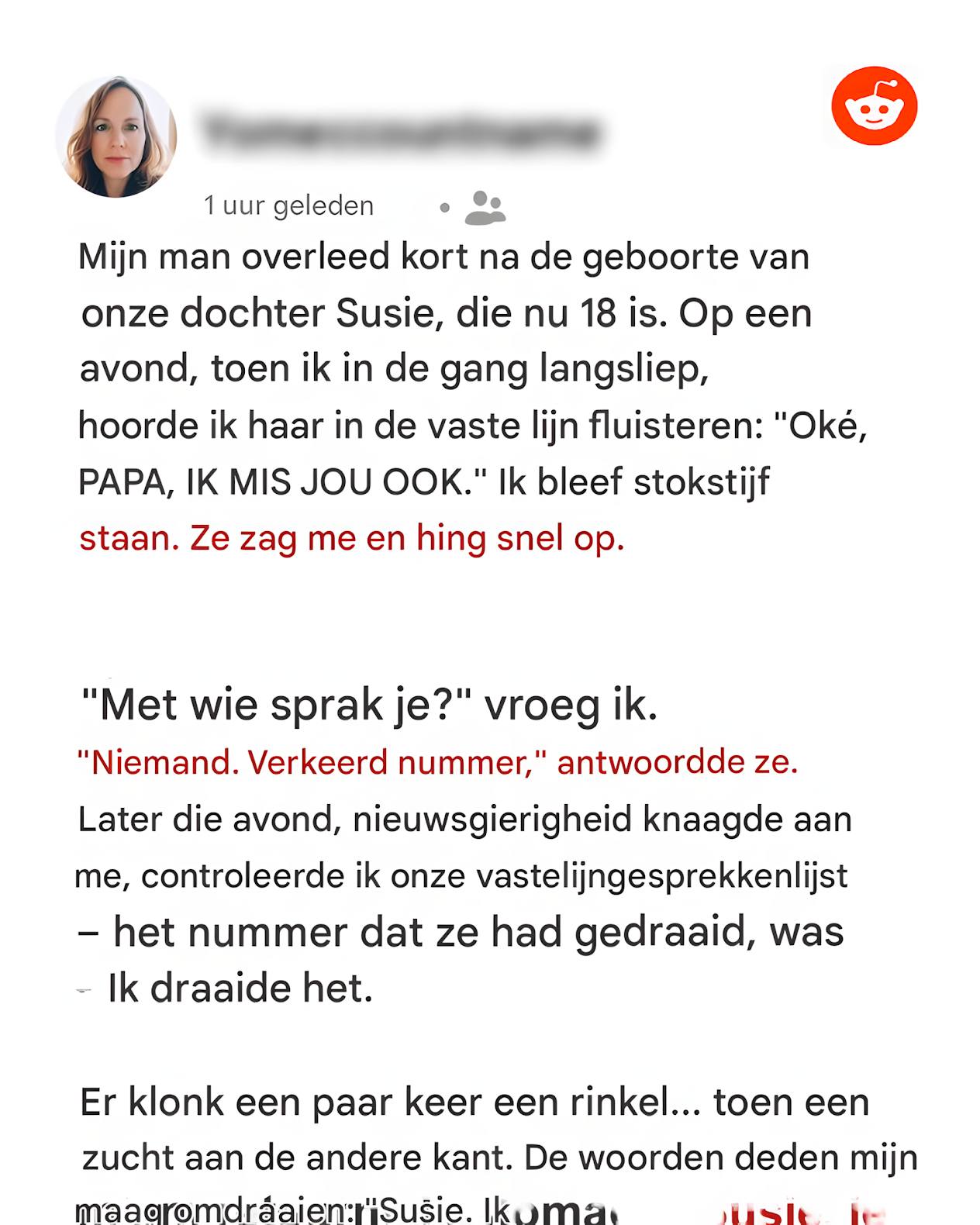 Het gebeurde op een gewone dinsdagavond. Ik liep door de gang toen ik Susie’s stem hoorde. Ze was zacht.
