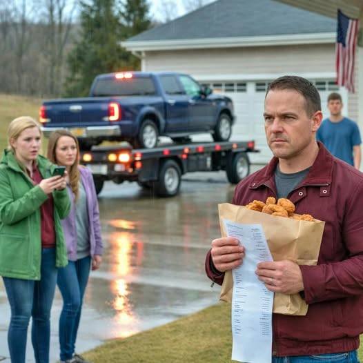 De zak gefrituurde kip van Ingles was nog warm in mijn hand toen ik de stem van mijn stiefzoon in de garage hoorde.