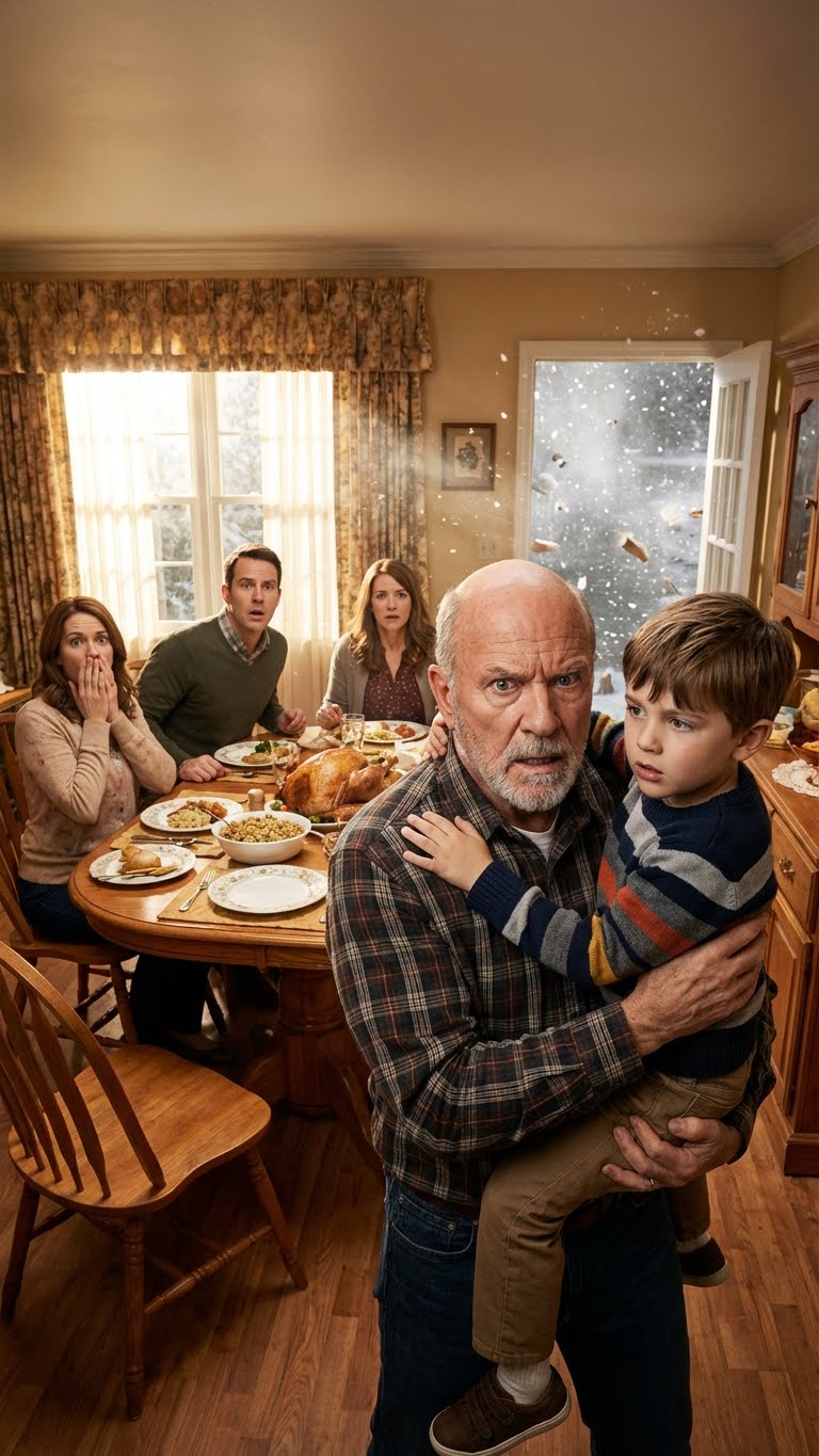 Op Thanksgiving Day kwam ik onverwachts bij mijn dochter thuis en zag mijn kleinzoon buiten rillen van de kou, slechts gekleed in een T-shirt en korte broek. Binnen zat het hele gezin aan de feesttafel, genietend van de kalkoen en lachend in de warmte. Woedend over hun verraad trapte ik de deur in en sprak zes woorden uit die hun gezichten bleek deden worden. Maar dat was slechts het begin van de gerechtigheid die hun leven voorgoed zou veranderen.