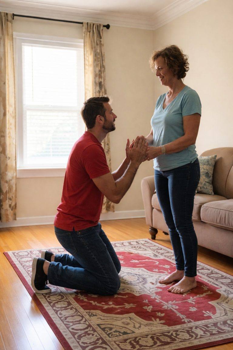 Wat ik me nooit had kunnen voorstellen, was dat ik mijn ouderlijk huis binnenliep en mijn toekomstige echtgenoot op zijn knieën voor mijn moeder aantrof, alsof hij om vergeving smeekte, terwijl zij stijf en ondoorgrondelijk boven hem stond.