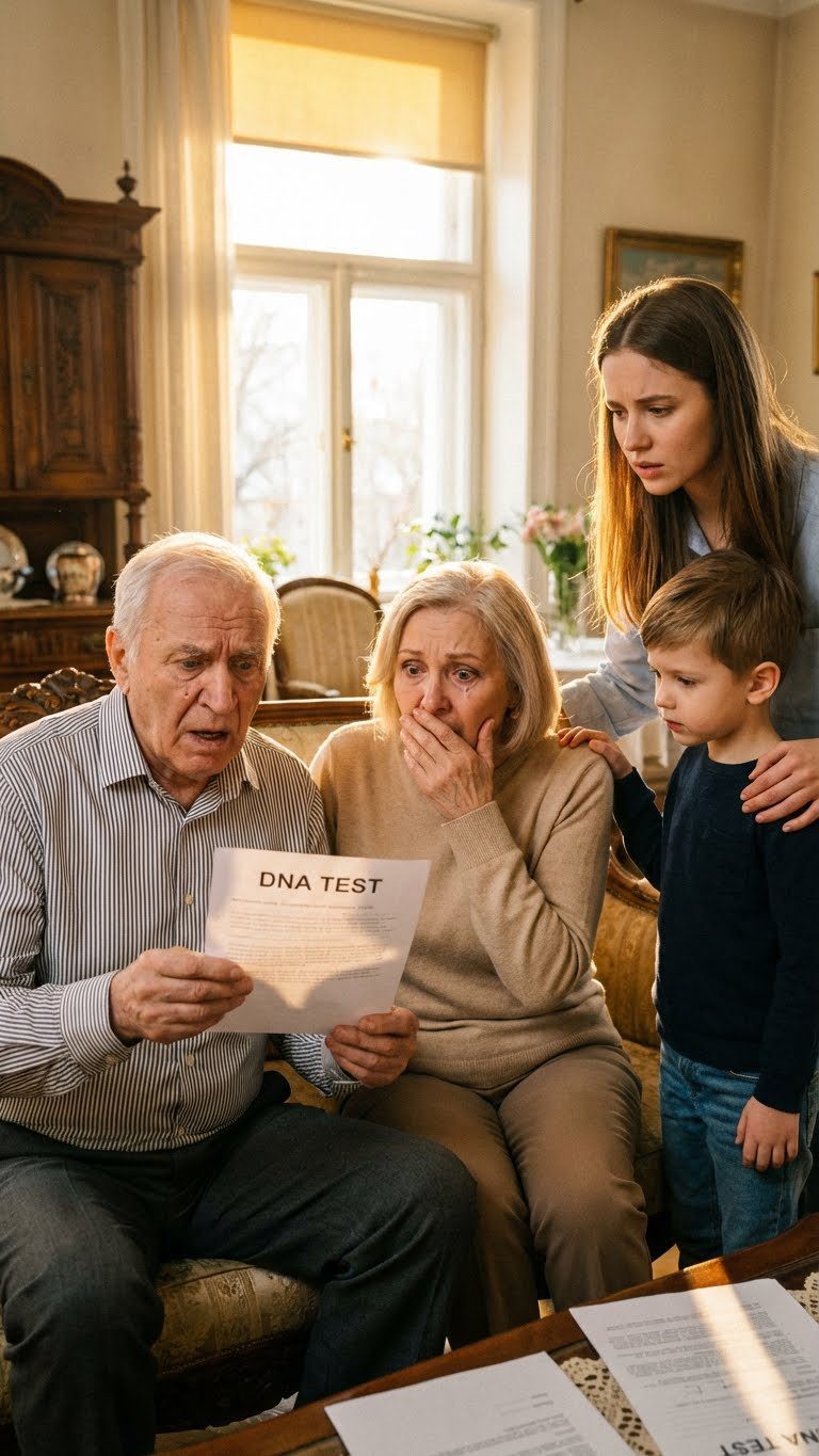 Mijn vader strekte eindelijk met trillende hand zijn hand uit naar de DNA-uitslag , zijn ogen gevuld met een plotselinge, afschuwelijke helderheid die hem in een enkele, stille seconde twintig jaar ouder leek te maken.