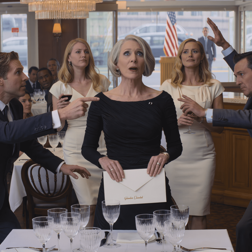 Enkele gasten leunden half uit hun stoel, zichtbaar nieuwsgierig. De ober naast me stond gespannen, zijn ogen schoten heen en weer tussen mij en mijn zoon alsof hij op een bevel wachtte.