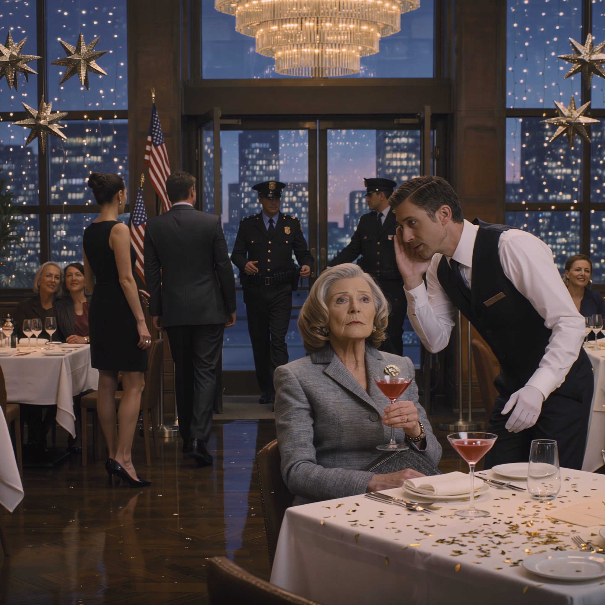 Ik vierde feest in een chique restaurant met mijn dochter en haar man. Maar nadat ze vertrokken waren, kwam een ​​ober naar mijn tafel en fluisterde een waarschuwing die me de rillingen over de rug deed lopen. En toen… kwam de politie!