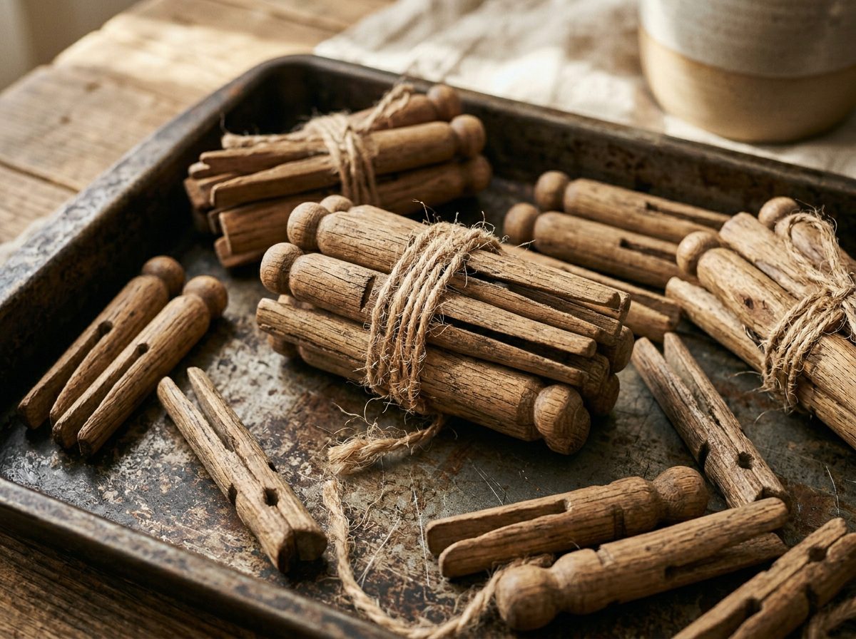 Vakmanschap: De eerste houten wasknijpers waren met de hand gesneden, met de vaardigheden van ambachtslieden die trots waren op hun werk.