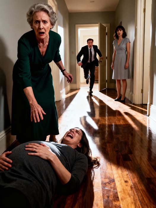 Ik was acht maanden zwanger toen mijn schoonmoeder tegen me schreeuwde: « Je hebt mijn kind gestolen! » Voordat ik kon reageren, greep mijn schoonzus me bij mijn nek en duwde me zo hard dat mijn buik tegen de tafel sloeg. Ik voelde een scherpe pijn en mijn vliezen braken onmiddellijk. Ze lachte en riep: « Dat is je straf! » Ik kon nauwelijks ademhalen, maar toen mijn man binnenkwam en het tafereel zag… de blik op zijn gezicht vertelde me dat niets meer hetzelfde zou zijn. En dat mijn wraak al begonnen was.