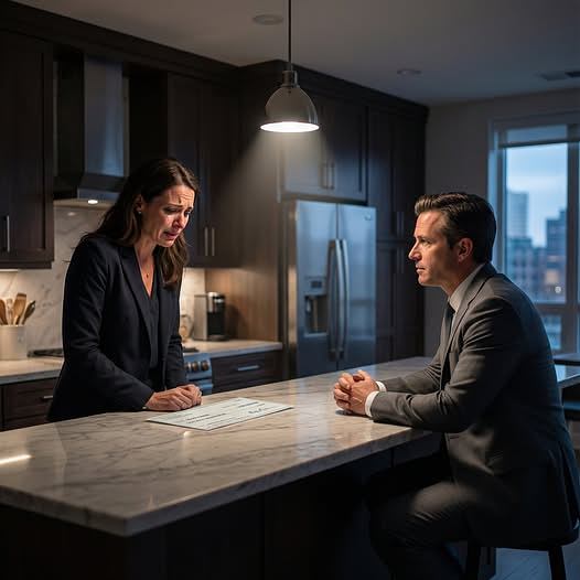 We zaten tegenover elkaar aan mijn keukentafel als twee mensen die een zakelijke deal bespraken, niet als twee vreemdelingen die door verraad met elkaar verbonden waren. Daniel verhief zijn stem niet. Hij beledigde zijn vrouw of mijn man niet. Hij legde simpelweg een dunne zwarte map op tafel en schoof die naar me toe.