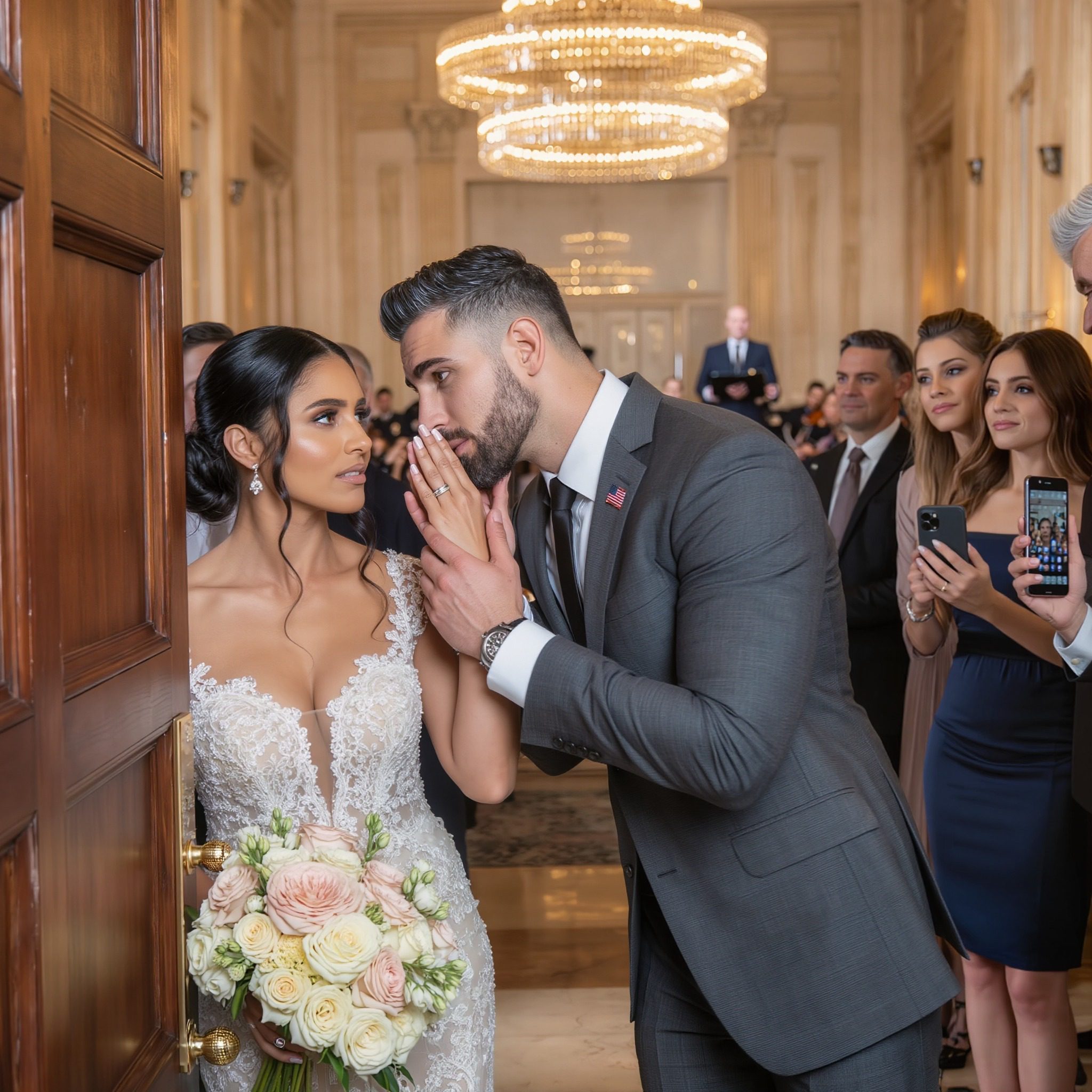 Het gemurmel groeide uit tot een golf, met nerveus gegiechel, gespeelde kreten van verbazing en steeds meedogenlozere opmerkingen. Sophia voelde haar benen trillen onder het gewicht van meters en meters Frans kant. Haar boeket witte rozen gleed uit haar handen en viel met een doffe plof op de grond.