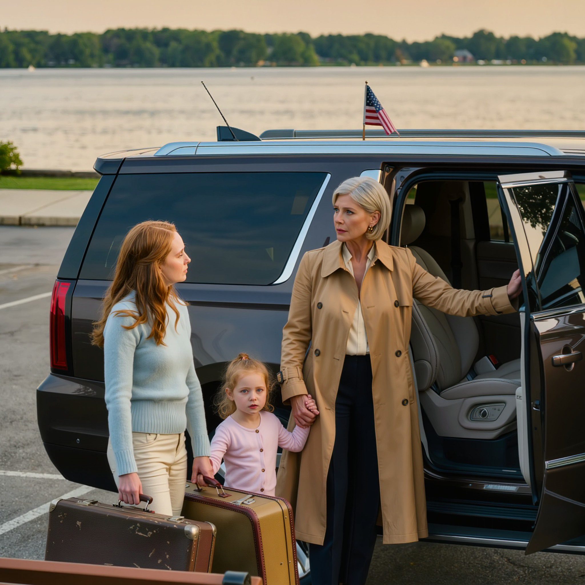 Ik stond als aan de grond genageld aan de rand van het park, mijn ogen gericht op mijn dochter die op een bankje bij het strand zat. Haar haar was een warboel. Haar ogen waren rood en opgezwollen. Een klein meisje, amper vier jaar oud, klampte zich vast aan haar been alsof ze bang was dat de wereld haar zou meesleuren. Twee versleten en stoffige koffers lagen ernaast, alsof ze een lange reis hadden afgelegd.