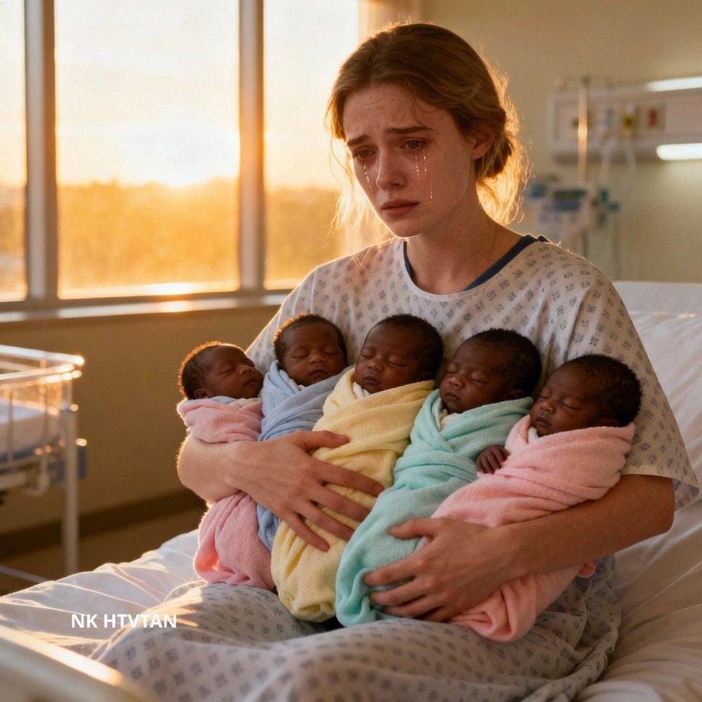 De kraamafdeling was gevuld met lawaai – vijf kleine stemmetjes die tegelijk huilden. De uitgeputte jonge moeder glimlachte door haar tranen heen terwijl ze naar haar vijfling keek. Ze waren klein, kwetsbaar, maar perfect.