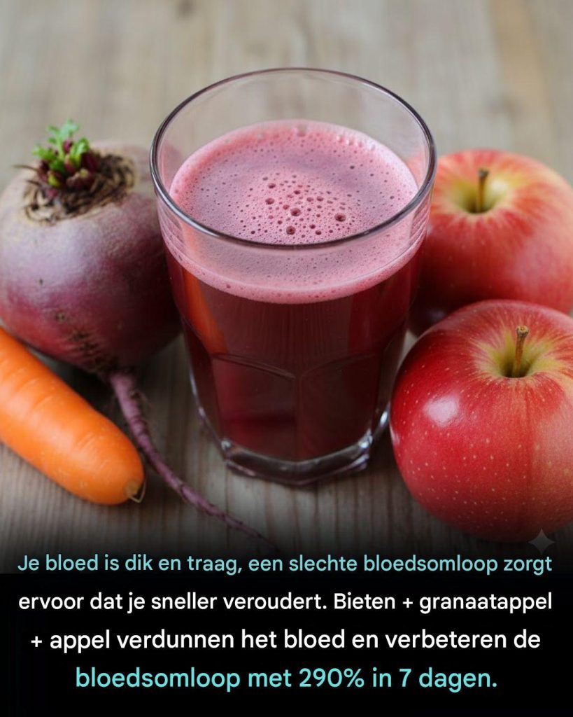 Een van de krachtigste natuurlijke combinaties voor het verbeteren van de bloedsomloop is die van bieten, granaatappel en appel . Samen vormen deze drie ingrediënten een cardiovasculaire “drie-eenheid” die op verschillende manieren een gezonde bloedstroom ondersteunt. Sommige vasculaire studies suggereren dat dit type combinatie de productie van stikstofoxide aanzienlijk kan verhogen en kan bijdragen aan een merkbare verbetering van de bloedviscositeit en bloedsomloop in slechts zeven dagen.