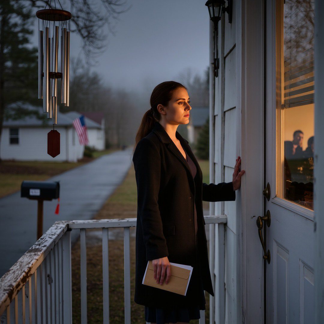 Min meer röst kom först – låg, skarp, controle. « Hon är här. Jag såg hennes bil. »