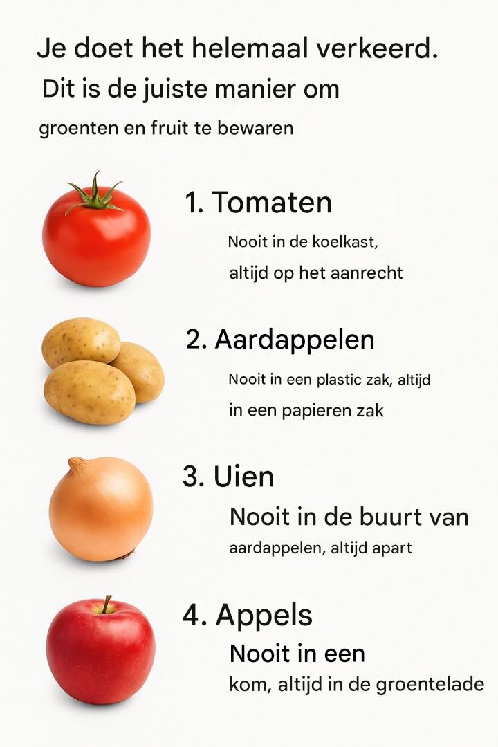 Je doet het helemaal verkeerd. Dit is de juiste manier om groenten en fruit te bewaren.