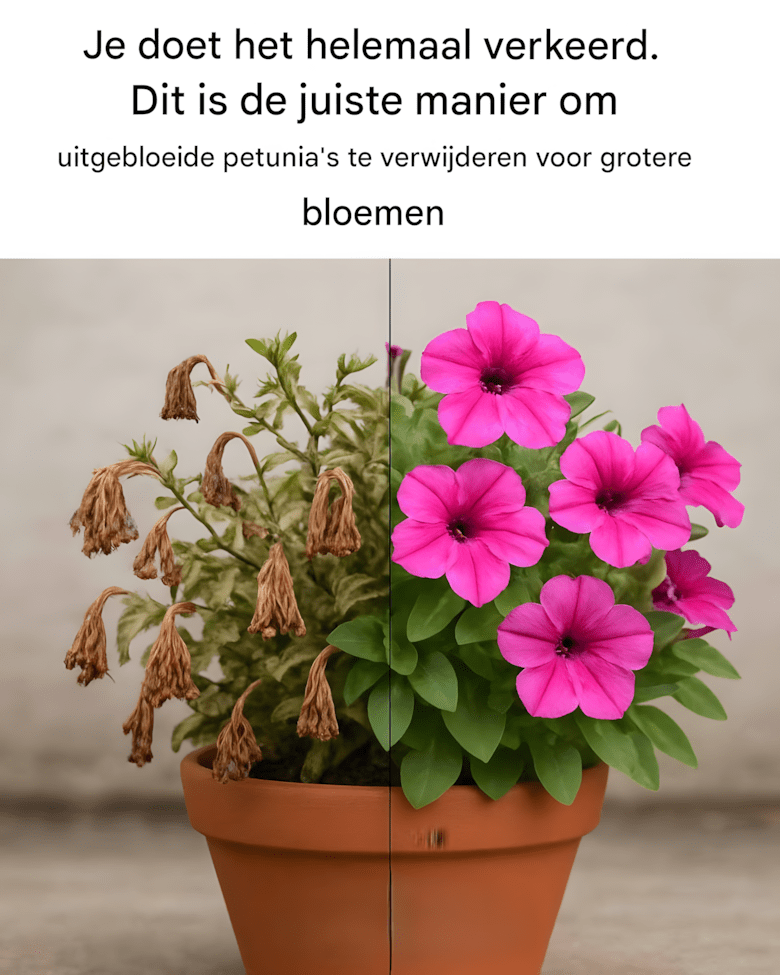 Je doet het helemaal verkeerd. Dit is de juiste manier om uitgebloeide petunia’s te verwijderen voor grotere bloemen.