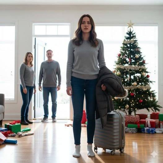 Terwijl ik met mijn koffer naar de deur liep, verscheen mijn moeder onderaan de trap in een rouwkleurige trui, vermomd als een teken van gratie.