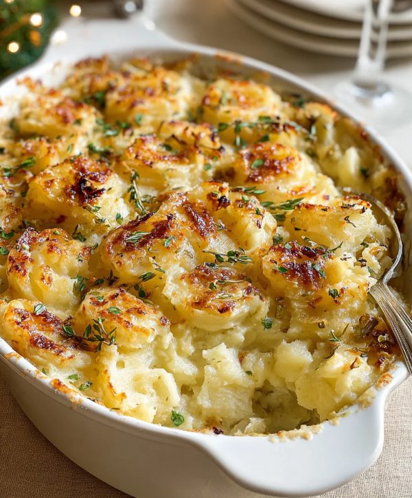 3. Serveren:  Serveer deze gratin royaal als hoofdgerecht bij gebraden vlees (kip, kalkoen, gebraden varkensvlees) of witte vis. Het is ook stevig genoeg als complete vegetarische maaltijd met een frisse groene salade. Het combineert uitstekend met een frisse, droge witte wijn zoals een Sancerre of Chablis, waarvan de zuurgraad een mooi contrast vormt met de romigheid van het gerecht. Bestrooi vlak voor het serveren gerust met wat vers gehakte kruiden voor een vleugje frisheid en kleur.