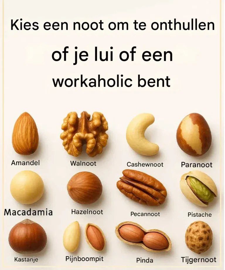 Als je dol bent op hazelnoten, ben je hier voor zachte dekens, warme dranken en een goede balans tussen werk en privé – met de nadruk op het leven. Je bent niet lui; je geeft gewoon meer om comfort, rust en een goede sfeer dan om deadlines.