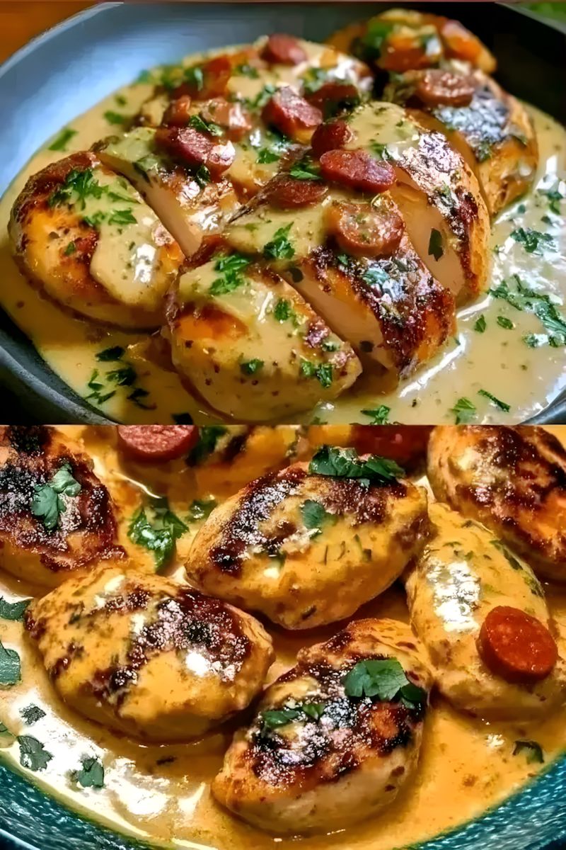 Verhit de olijfolie in een koekenpan op middelhoog vuur en bak de kip 4–5 minuten per kant, tot ze goudbruin zijn. Haal de kip uit de pan en zet apart.