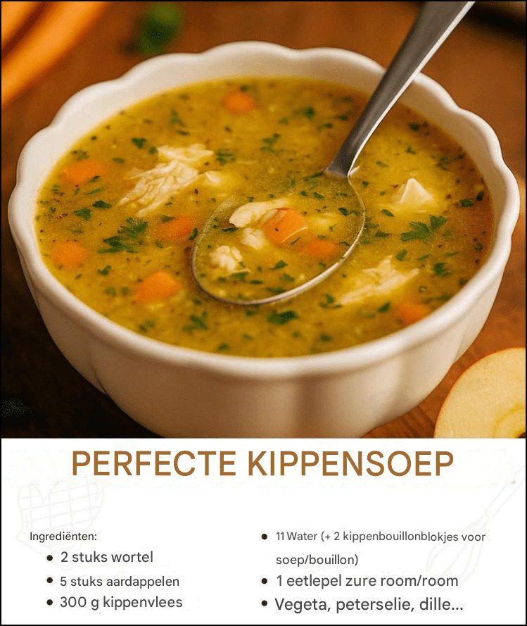 Weinig gerechten combineren eenvoud en diepe smaak zo perfect als kippensoep. Deze romige, zachte soep – soms ook “witte soep” genoemd – is ideaal voor koude dagen, herstelmomenten of gewoon als troostrijke maaltijd.