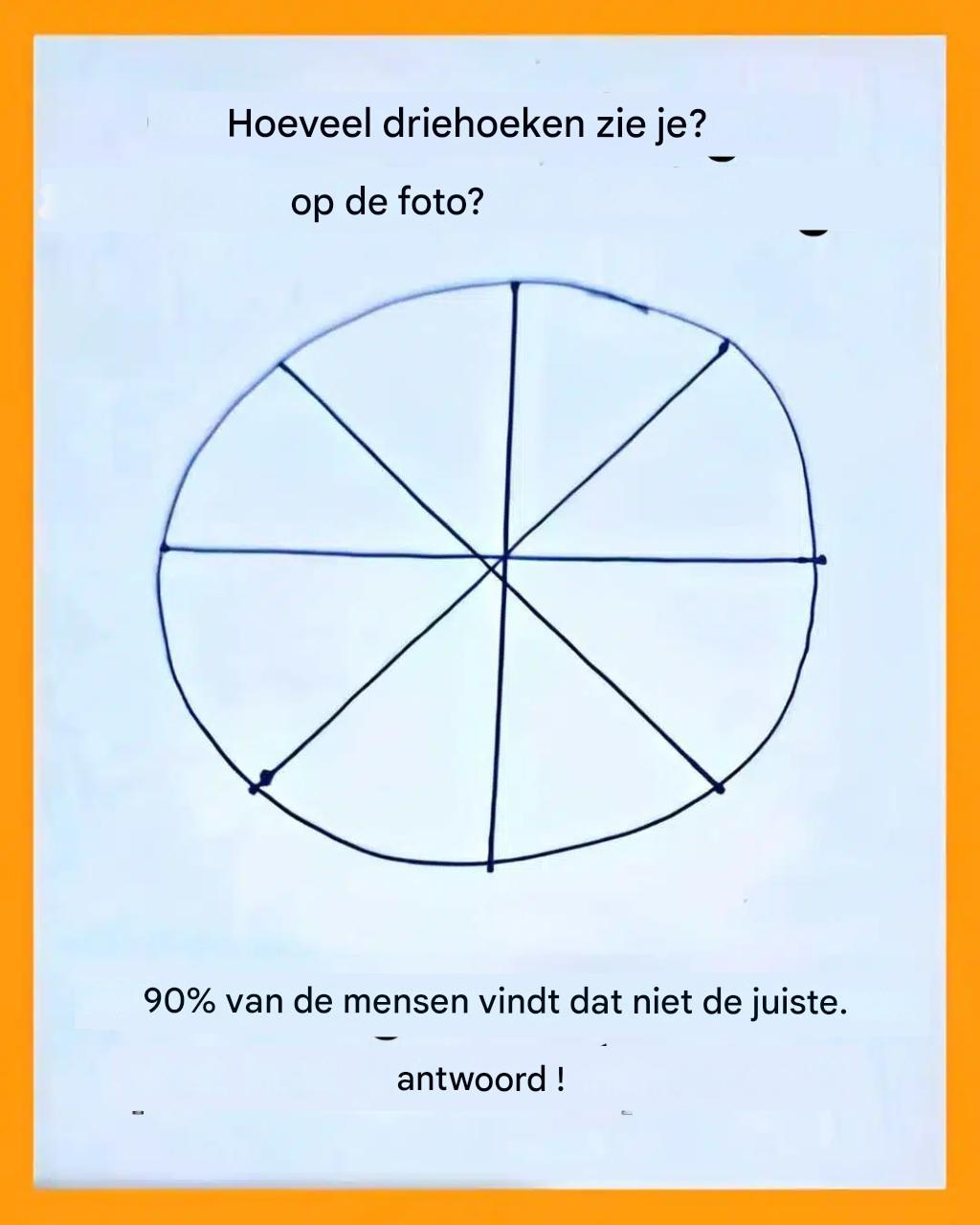 Het lijkt op een symmetrisch gesneden taart. Een cirkel, vier rechte lijnen die elkaar in het midden kruisen, en een simpele, handgeschreven vraag: “Hoeveel driehoeken?” “Makkelijk, toch? En toch…” Deze kleine visuele puzzel, die razendsnel op sociale media circuleert, vormt een uitdaging, zelfs voor de meest oplettende geesten. Dus, ben jij klaar om de uitdaging aan te gaan?