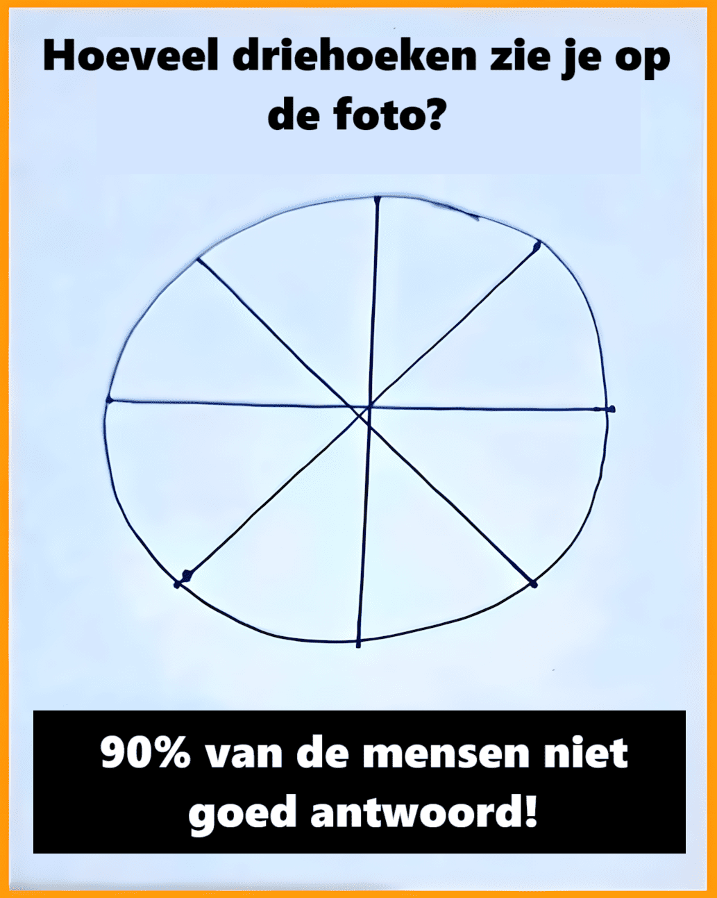 Het lijkt op een symmetrisch gesneden taart. Een cirkel, vier rechte lijnen die elkaar in het midden kruisen, en een simpele handgeschreven vraag: « Hoeveel driehoeken? » « Makkelijk, toch? En toch… Deze kleine visuele puzzel, die razendsnel circuleert op sociale media, stelt zelfs de meest oplettende geest op de proef. Dus, ben je klaar om de uitdaging aan te gaan?