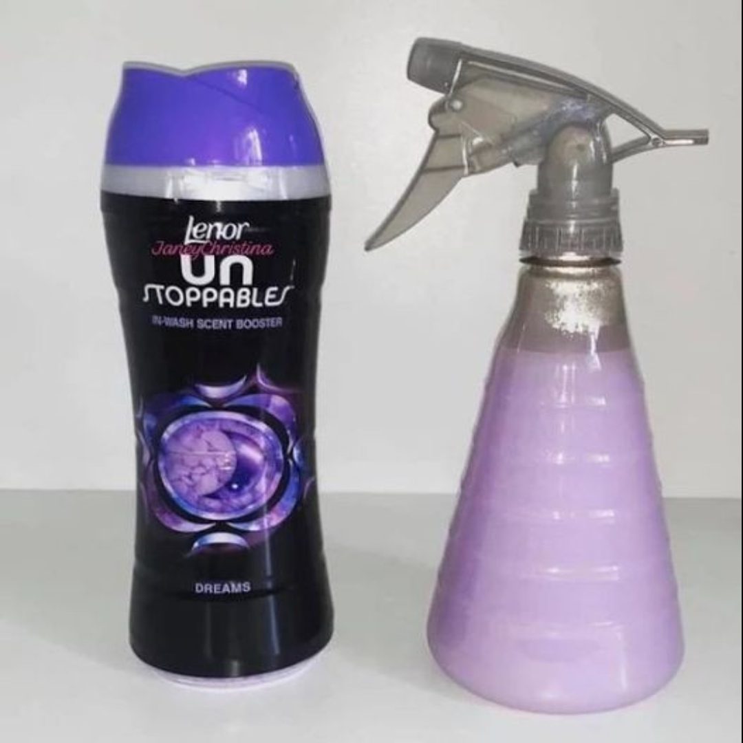 Ashton Emmett stuurde een link naar een artikel dat ze online vond en waarin werd uitgelegd hoe je een heerlijk aroma in je huis kunt creëren. Het enige wat je nodig hebt is warm water en een dopje Unstoppables in een spuitfles. Om de levensduur van de frisse geur op uw gordijnen, bedden, vloerkleden en andere materialen te verlengen, schudt u de container en besproeit u deze met de oplossing