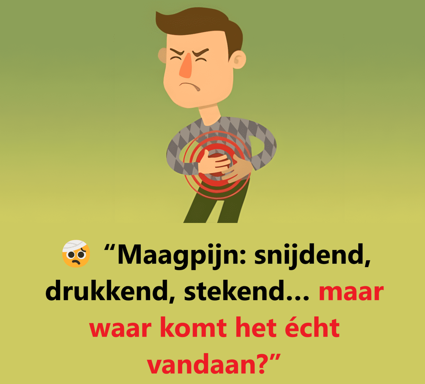 De maag kan steken, knellen, drukken, opzwellen, snijden. En het is niet altijd mogelijk om precies aan te geven waar het pijn doet, omdat het gewoon pijn doet… in de maag.