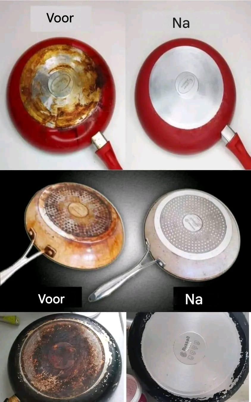 Om je te helpen, vind je hier een handige tip voor het schoonmaken van de achterkant van een pan.