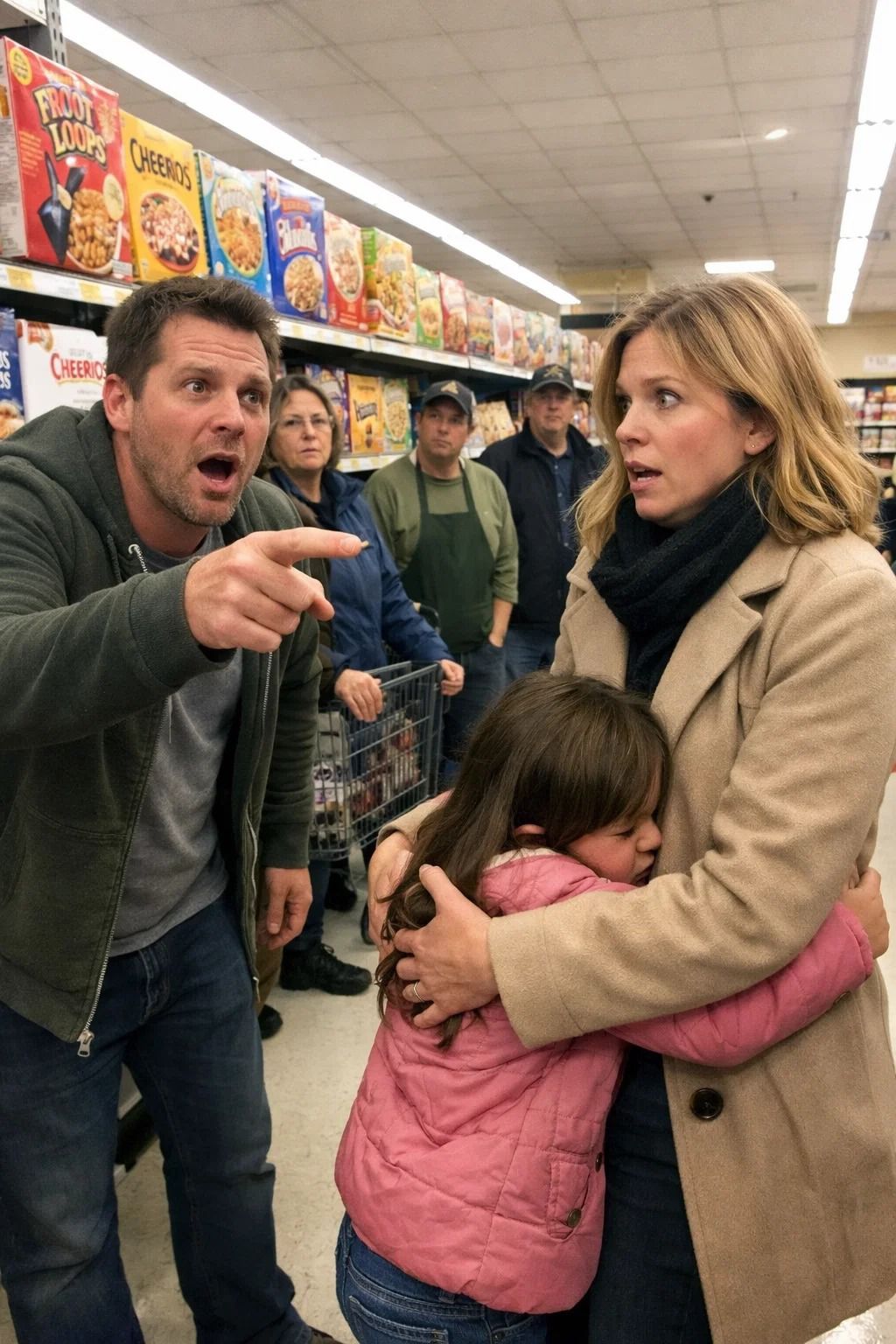 ‘Mama,’ fluisterde het kleine meisje terwijl ze me omhelsde in het gangpad met ontbijtgranen. Minuten later wees een man naar me en beweerde dat ik zijn vermiste vrouw was.