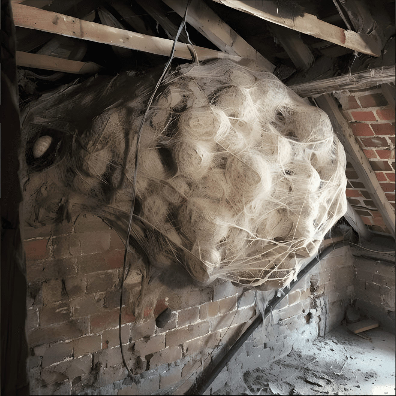 Achter een balk, vlak bij het raam, ontdekte hij een massief nest – donkergrijs, levendig zoemend en groter dan een voetbal. Zijn eerste gedachte: een wespennest.