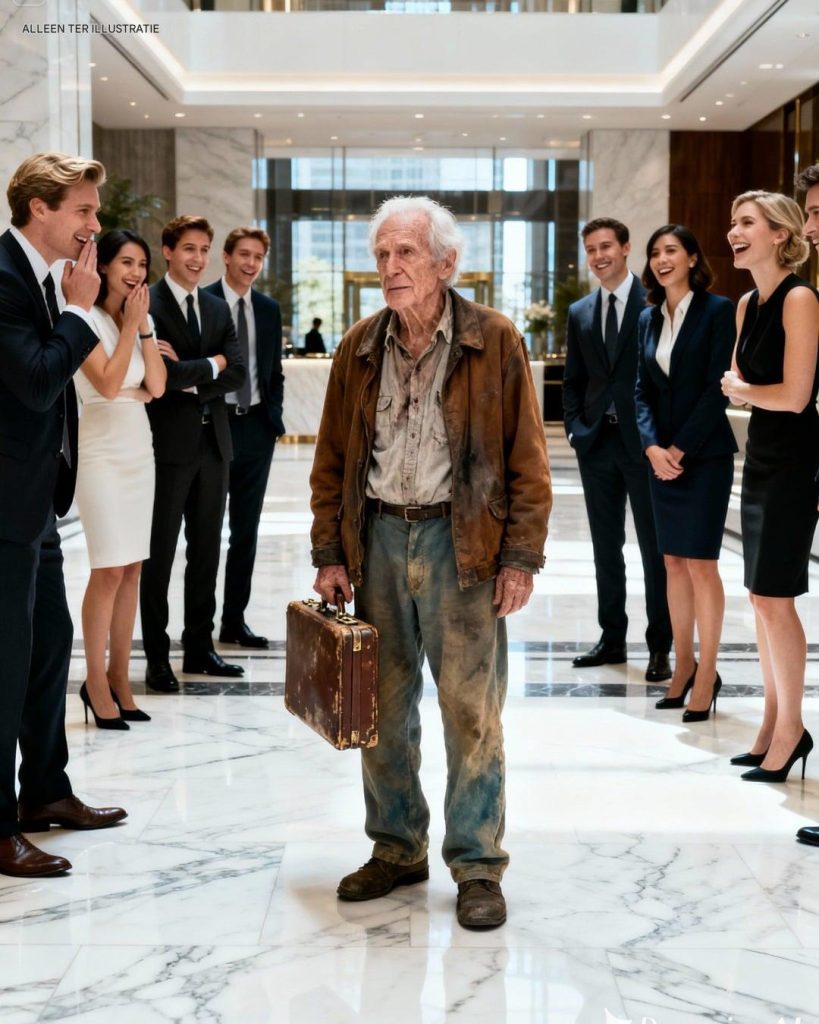 ‘Mensen zoals u horen hier niet thuis,’ zei de receptioniste met een zelfverzekerde glimlach. Maar toen de man in het versleten jasje eindelijk sprak, viel er een doodse stilte in de lobby. Elke directeur besefte dat de vreemdeling die ze hadden bespot, degene was die de toekomst van het bedrijf in handen had.
