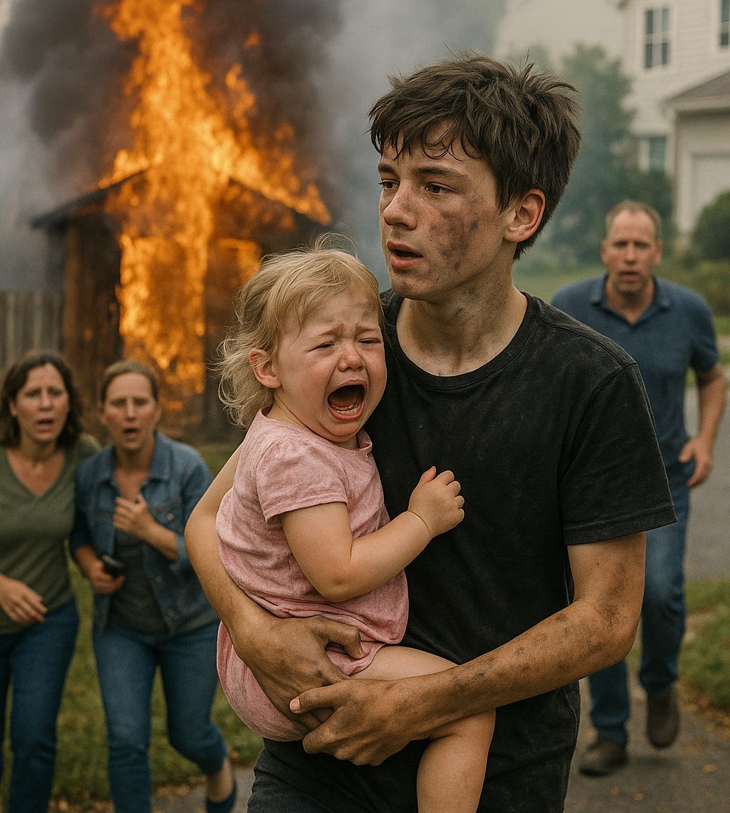 Toen kwam het geluid dat nog steeds mijn dromen doorsnijdt: het angstige gehuil van een baby die vlakbij die brandende schuur vandaan kwam. Voordat mijn hersenen überhaupt konden verwerken wat er gebeurde, bewoog Ethan. Hij gooide zijn telefoon in het gras en rende zonder aarzelen recht op de vlammen af.