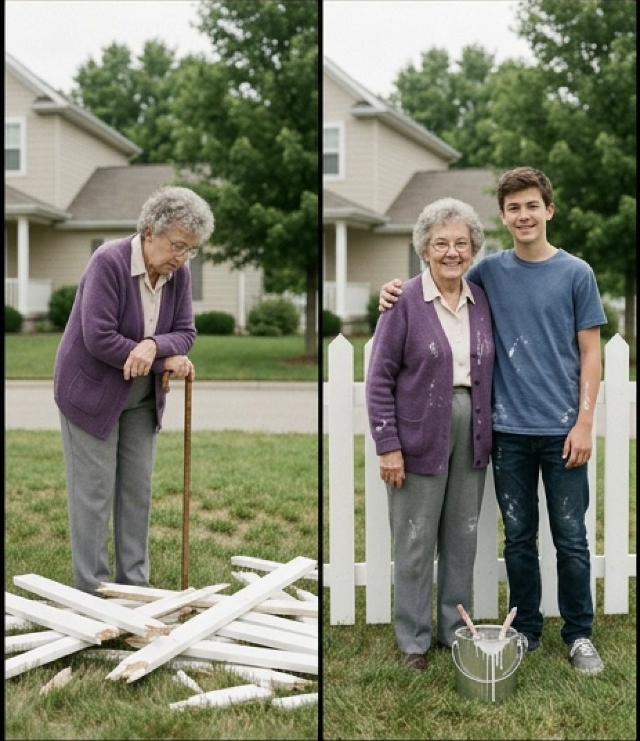 Mijn 14-jarige zoon heeft na de storm het hek van onze bejaarde buurvrouw gerepareerd.
