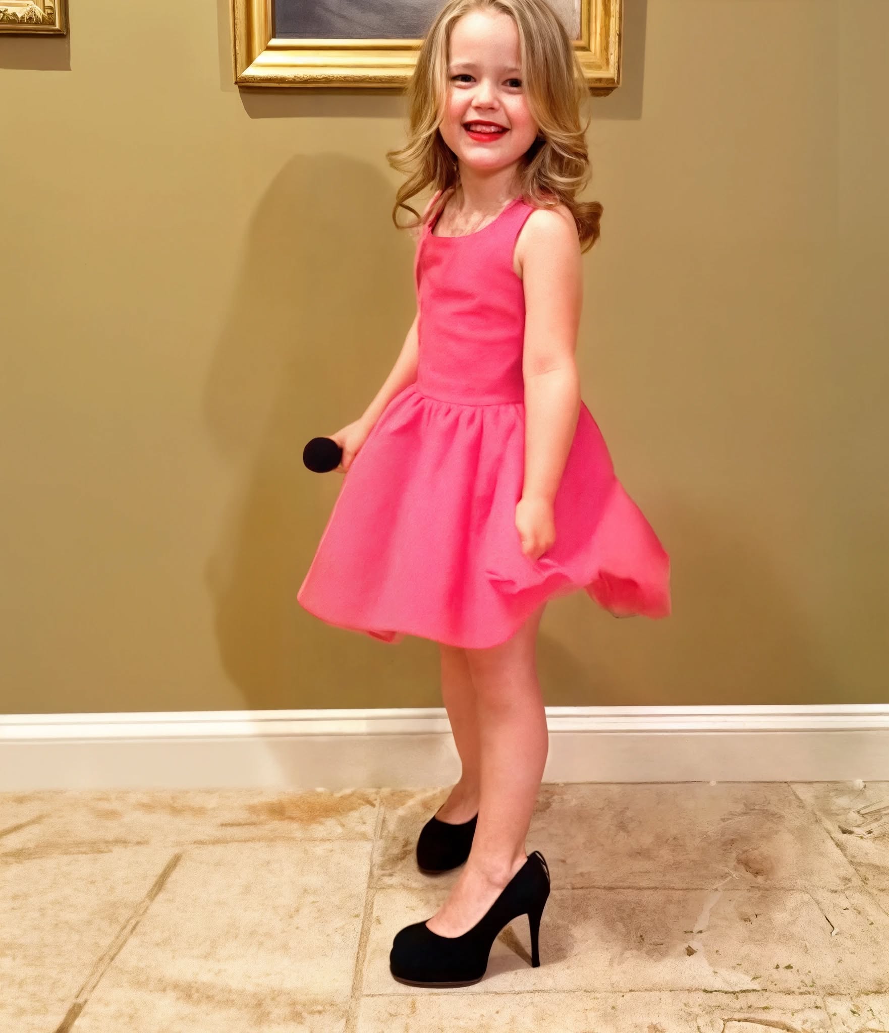 In het begin moest ik lachen. Ze was zo grappig – kleine voetjes die wiebelden in schoenen die veel te groot waren, een knalrood mondje dat helemaal scheef stond.